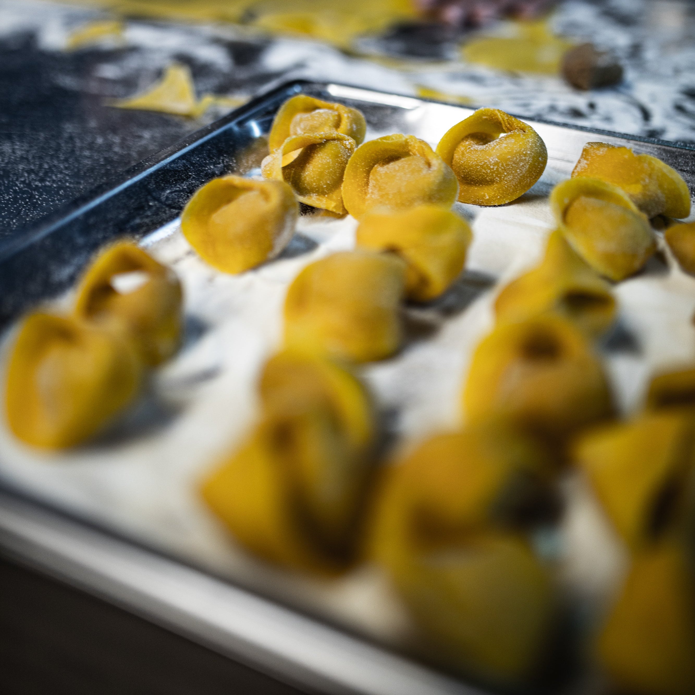 The tomato tortelli! For the filling, in addition to the fresh tomato sauce, we also mix tomatoes dried in our kitchen. prepare. On our current menu, we serve it with seafood.